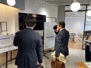 意見交換後は、愛媛県庁内に整備された官民共創拠点「トライアングルベース」[New window]などを視察し、本学および岡山市の担当者を交えて、両地域が連携して進める具体的な取り組みについて検討を行いました。